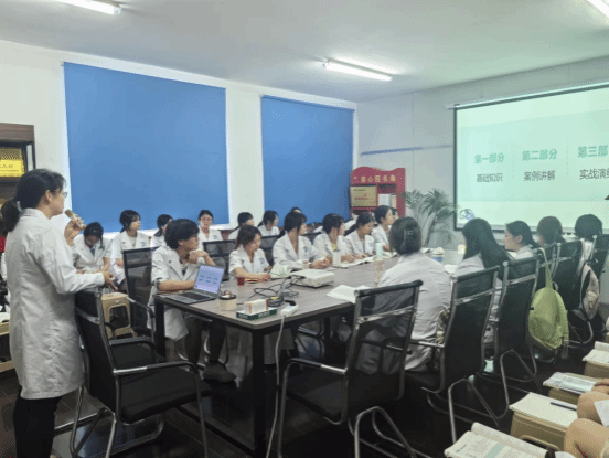 环节二:中药合理应用集中学习。在会议室,医院资深带教老师蒲雪围绕“中药合理应用”这一核心主题,进行了条理清晰、内容充实的授课。课程巧妙融合了基础知识铺垫、典型案例深度解析和贴近实战的模拟演练三个模块。蒲老师特别聚焦于中成药处方的合法性审核、规范性审查以及临床适宜性评估,将大量源于临床一线的真实案例贯穿教学始终,生动展现了理论在实践中的应用,有效弥补了传统课堂教学在实践对接方面的不足。其授课风格生动形象,内容极具实用性和指导价值,赢得了在场学生的一致好评和高度赞誉。