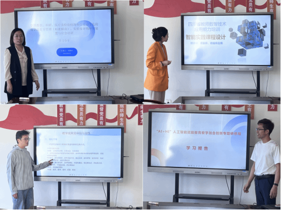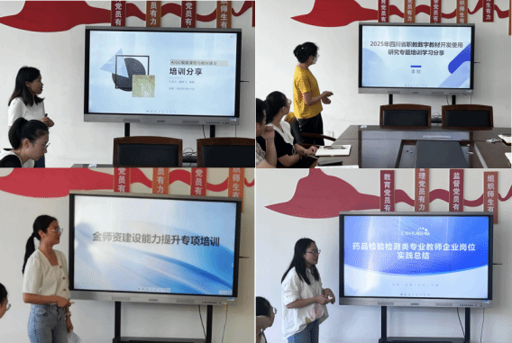 李欧老师则带来了“四川省职教数字教材开发使用研究”的培训精华。她分析了如何根据学生群体差异转变教学设计与理念,并系统阐述了高水平数字化教材的建设原则、科学方式与实施路径。此外,她还代表周莉江、张富东老师分享了“AI赋能教学科研工作”的心得,重点介绍了AI在公文撰写、视频内容生成等方面的应用。