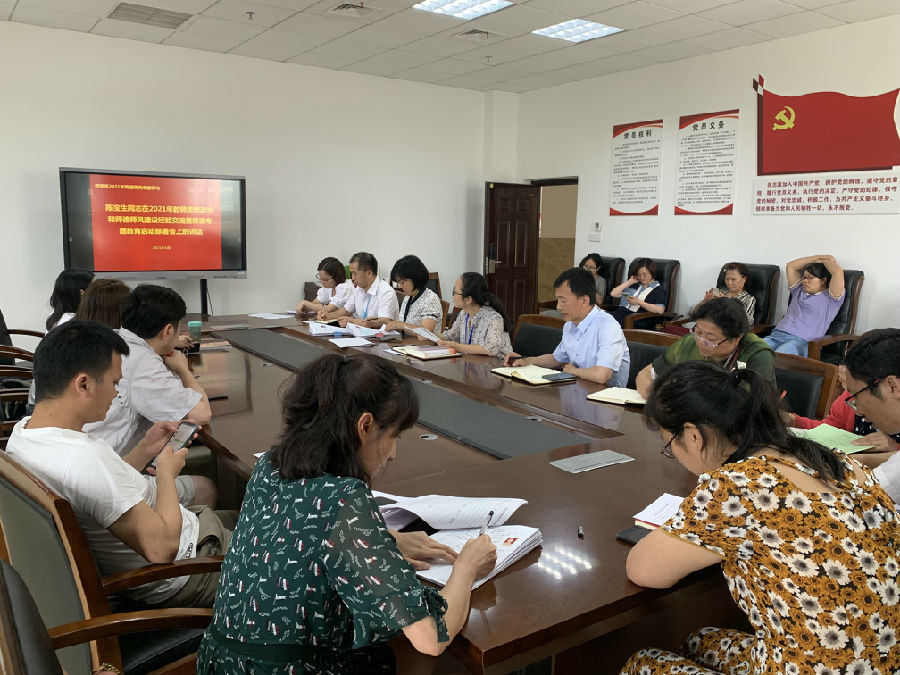 6月28日下午2:00,药学系在2号教研楼201会议室召开了2020-2021第二学期师德师风专题学习会,会议由总支书记徐娇主持并领学《陈宝生同志在2021年教师思想政治和师德师风建设经验交流暨师德专题教育启动部署会上的讲话》。