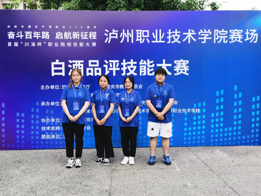 2021年6月27日,由泸州市人民政府和四川省教育厅、重庆市教育委员会共同主办的首届“川渝杯”职业院校白酒品评技能大赛在泸州职业技术学院顺利举行。经过激烈角逐,我院由周静贤、高春秀、杨雅杰、李龙雨4位同学组成的代表队获得了团队二等奖的佳绩。