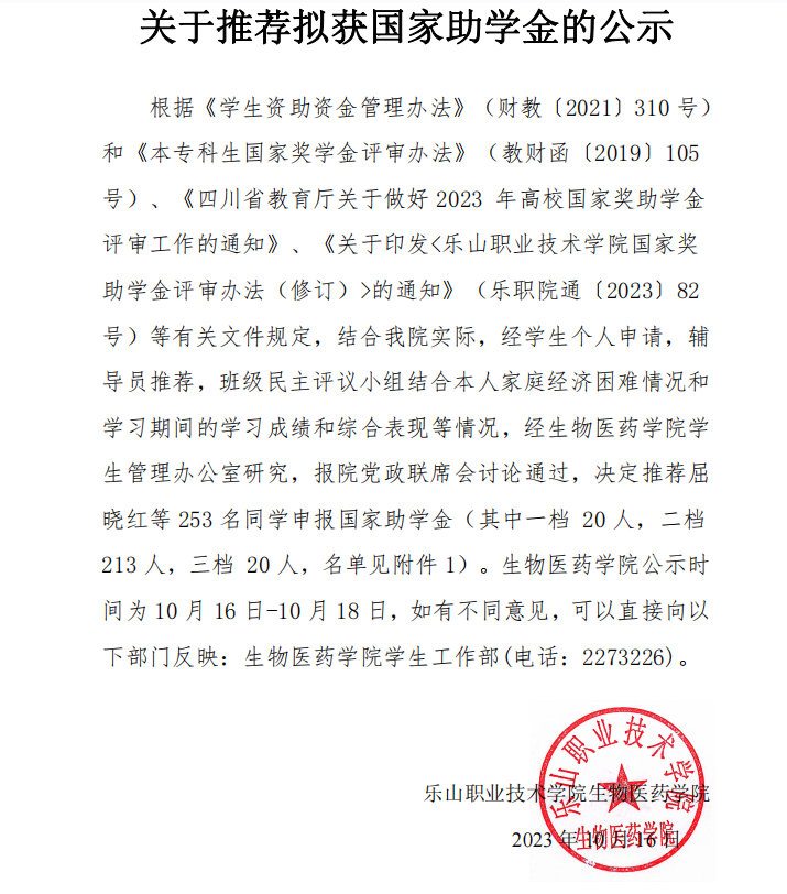 上一条: 生物医药学院2022-2023学年国家励志奖学金拟推荐人选公示