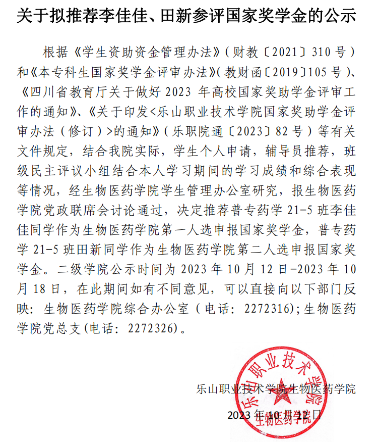 下一条: 生物医药学院2022-2023学年国家励志奖学金拟推荐人选公示