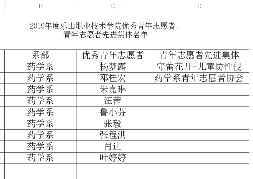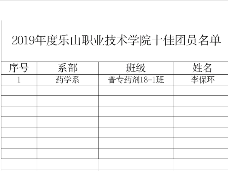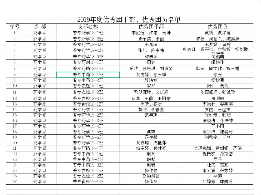 根据乐职委团〔2020〕2号“开展创先争优团员民主教育评议暨“五四”评选表彰团内先进集体和个人”的通知。经过各班级推荐,系部组织部资格审核,系团委办公室综合意见,拟推荐药剂18-1班李保环为十佳团员,拟推荐药销18-1班团支部、中药19-1班团支部、药销19-1班团支部、食检19-1班团支部为先进团支部,拟将杨欢等39名同学评选为优秀团干部,推荐肖宇杰等50名同学评选为优秀团员,拟推荐黄鹏等6名同学为抗击新冠肺炎疫情优秀志愿者,邓桂宏等9名同学为优秀青年志愿者,拟推荐陈中伟等20名同学为创新创业先进个人。