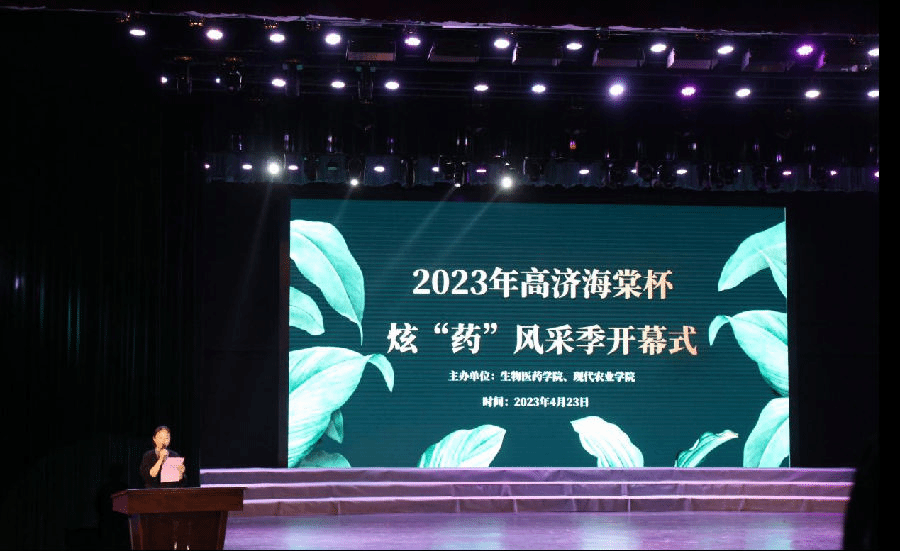为提高同学们的专业技能,丰富同学们的校园生活,生物医药学院、现代农业学院联合启动2023高济海棠杯炫“药”风采季,并于4月23日下午举行了开幕式。活动邀请了四川高济海棠药堂零售连锁有限公司总经理彭泽琦、beat365亚洲版官网副院长封家福、学院团委主持工作副书记龚涛及生物医药学院、现代农业学院近600名师生共同参加。