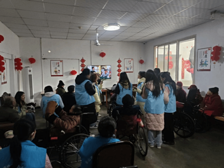 志愿者们携带精心挑选的生活慰问品,满载着对老人们的深情厚谊抵达养老院。在养老院工作人员的协调安排下,志愿者们迅速分组,有条不紊地展开了各项服务活动。有的志愿者细心地为老人整理房间、打扫卫生,确保他们的居住环境整洁舒适;有的志愿者则耐心地陪伴在老人身边,与他们话家常、听他们讲述往昔岁月,让老人们感受到亲人般的温暖与关怀;还有的志愿者献上了精心准备的文艺表演,一曲曲《没有共产党就没有新中国》、《紫荆花盛开》等经典歌曲的演唱,悠扬动听,让现场洋溢着欢乐与温馨的气氛,老人们不时跟着节奏拍手哼唱,脸上洋溢着幸福的笑容。