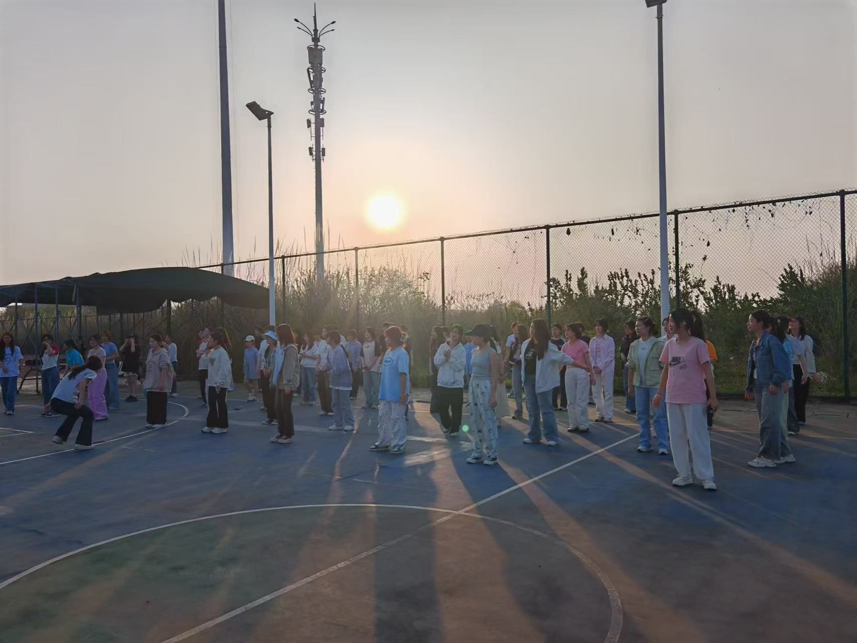 活动伊始,体育部干事组织同学们有序集结,由专业人员带领完成热身训练,重点强化关节活动与肌肉拉伸,有效降低运动损伤风险。随后,同学们在跑道列队,由干事领跑开启夜跑征程。夜幕下,荧光手环与晚霞余晖交相辉映,参与者们步伐矫健、互帮互助,在挥洒汗水间展现青春风采。