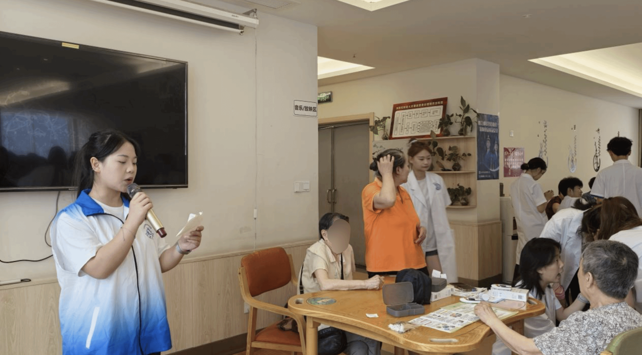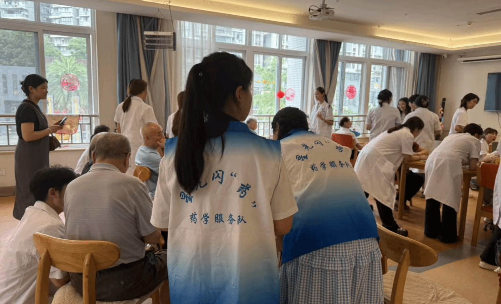 2025年6月20日下午,生物医药学院星光闪“药”志愿服务队和普专药品经营与管理23-1班的同学在黄泓轲、岑菲菲、朱晓琴三位老师的指导和带领下,走进乐山市市中区孝思养老院,为50余名老年人开展了“关爱健康,药学同行”的慢病健康宣教及爱心服务活动。