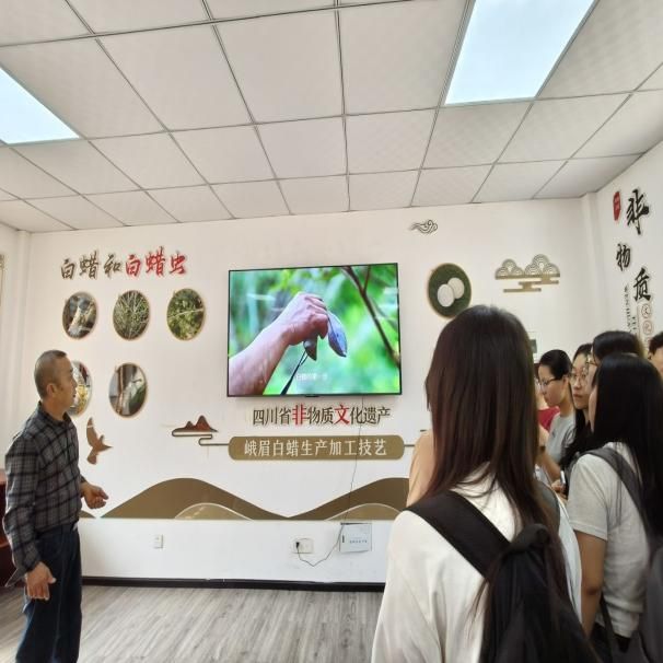 为引领同学们深入探寻虫白蜡制作技艺的奥秘,感受非遗文化的独特魅力,2025年10月15日,由生物医药学院党总支副书记靳婕带队,生物医药学院学生科科长张俊、辅导员谢雨芩、团委老师朱晓琴及39名学子于峨眉山市绥山镇麻柳村开展了“非遗传承,白蜡先锋”主题社会实践活动。此次活动通过参观麻柳村虫白蜡工艺坊、学习非遗文化,引领同学们走进非遗文化虫白蜡的精彩世界。