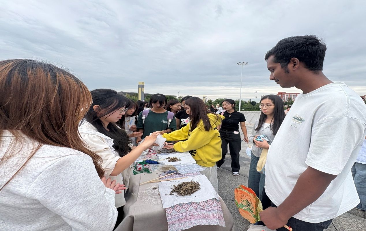 活动刚开始,各个项目的摊位前便迅速排起了长队,宛如一条条蜿蜒的巨龙。此次活动,阳和养生社特别邀请了留学生同学参与其中,希望他们能借助这次难得的机会,深入了解中国传统的中医药文化,搭建起一座跨文化的交流桥梁。留学生们怀着新奇与期待的心情,穿梭在各个摊位之间,与同学们一起感受中医药文化的独特魅力。