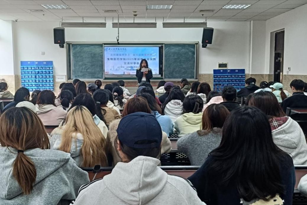 为了拓宽自身的知识面,增加个人在社会竞争中的经验,锻炼和提高自己的能力,让同学们能够更好的了解社会实践的重要性,生物医药学院社会实践部于2025年10月29日在教学楼组织了一场以“实践激扬青春志,奋斗成就医药梦”为主题的社会实践交流分享会。本次分享会共有85名同学参与。