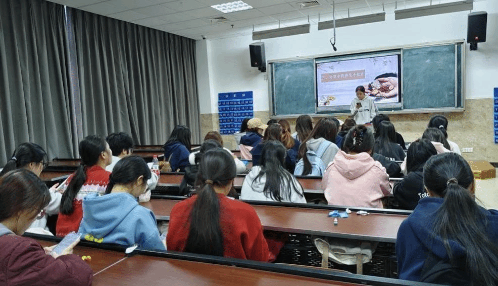 活动开场,主讲人运用图文形式围绕秋季常见药用植物展开了细致讲解。从种类繁多的植物分类,到各具特色的形态特征,再到它们适宜的生长环境。同学们通过直观的展示,认识了枸杞、麦冬、菊花等具有代表性的秋季药用植物。这一环节不仅为同学们打开了中药知识的大门,更为后续的互动环节筑牢了坚实的知识基石。紧接着,活动进入了趣味十足的中药配对游戏环节。工作人员给出植物功效的线索,各小组成员迅速反应,展开激烈抢答,争先恐后地说出对应的植物名称。现场气氛热烈非凡,每个小组都全力以赴,希望凭借丰富的知识和敏捷的思维赢得小奖品。最终,答对数量最多的小组脱颖而出,收获了属于他们的荣誉。游戏环节结束后,活动迎来了温馨的分享时刻。社员们纷纷主动上台,结合自身所学和生活经验,分享秋季中药养生知识。从饮食调理到日常保健,从常见疾病的预防到中药的合理使用,大家各抒己见,现场互动热烈非凡。