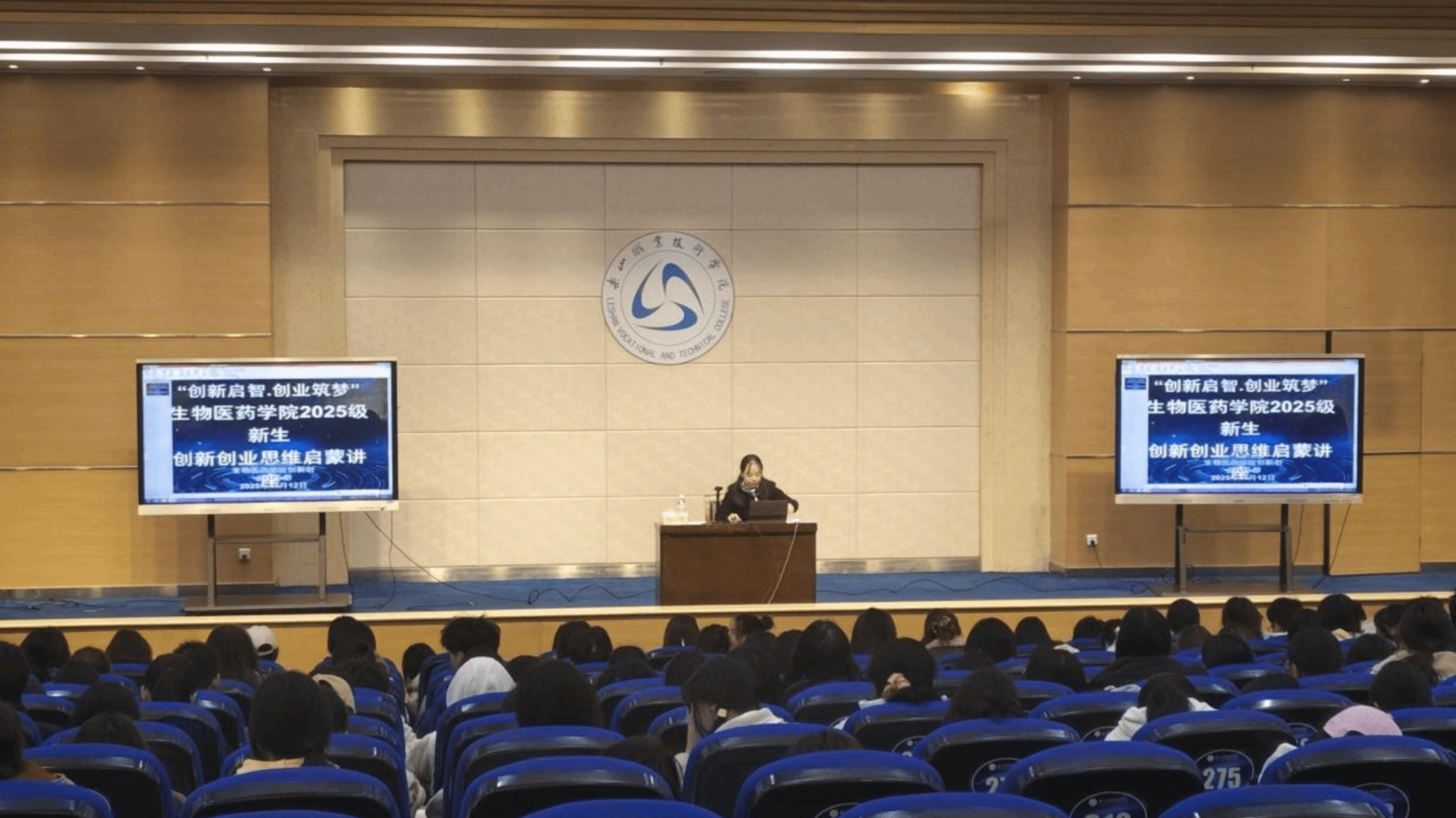 为在大学生群体中广泛播撒创新创业的种子,积极营造充满活力与创意的校园创新创业氛围,全面提升大学生的综合素养,2025年11月12日下午,生物医药学院于图书馆学术报告厅举办了一场以“创新启智,创业筑梦”为主题的创新创业思维启蒙讲座。beat365亚洲版官网创新创业教研室主任卿熠老师亲临现场,与生物医药学院2025级全体新生共同开启了一场探索创新创业奥秘的精彩之旅。