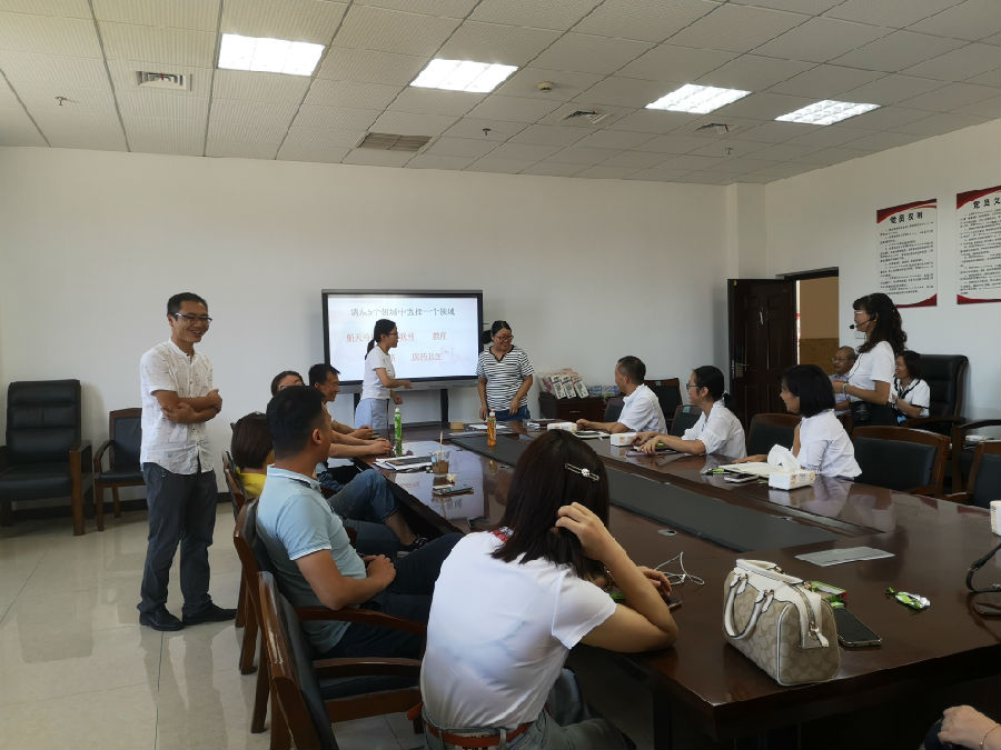 你说我猜环节由组长剪刀石头布定输赢,赢者可以先从航天科技、互联网、医药卫生、一带一路、教育中任选一个方面进行组内你说我猜,每个方面15个词语,回答多者为胜,限时3min,胜者参加抽奖活动。党史抢答环节共有10道题,两个小组抢答,回答多的组获胜,胜者参加抽奖活动。