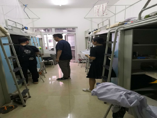 为了进一步了解同学们的宿舍生活情况,药学系纪检部和生活部成员在值周老师余杰的带领下,于2021年9月1日晚19:00在beat365亚洲版官网对男生宿舍楼1B进行了走访。