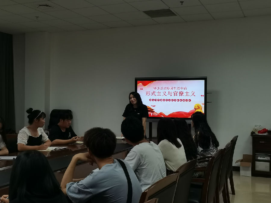 2021年9月5日下午,药学系学管办组织开展了“药学系学生干部培训及学生干部作风整改大会”。本次大会由团委创业干事宋建群老师主持,药学系全体学生干部参加。