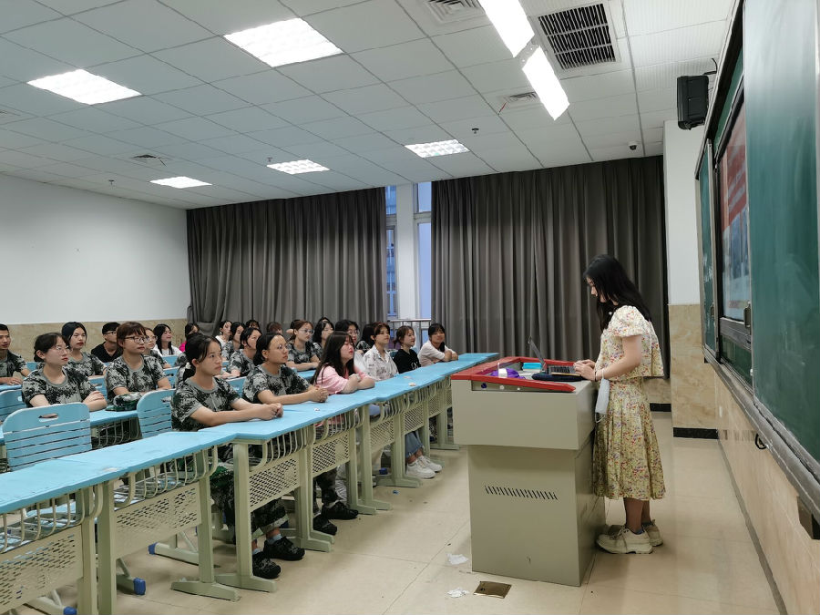 2021年9月5日,药学系新生班级辅导员在二号教学楼组织2021级新生观看《开学第一课》。