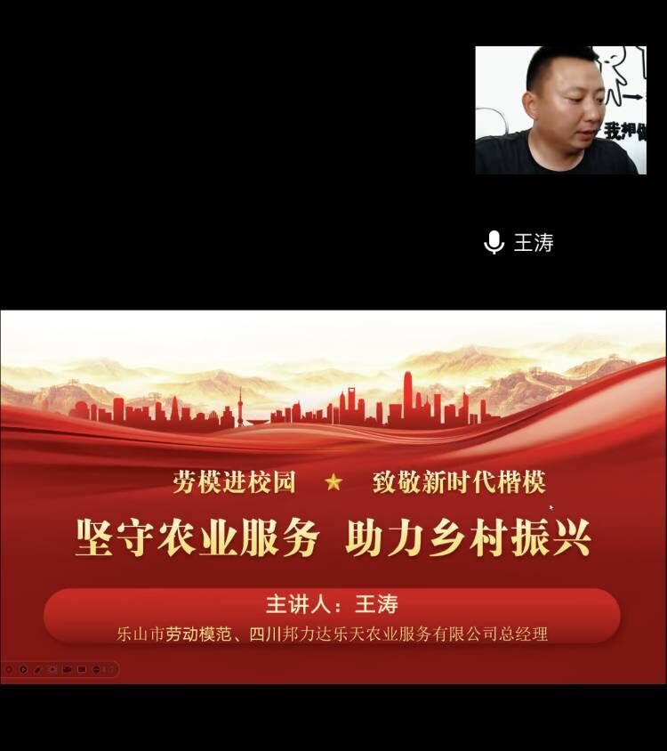 活动邀请了乐山市劳动模范王涛同志。该同志毕业于成都农业科技职业学院,高级农技师,现任职夹江县农学会会长、夹江县政协委员,夹江县科协常委,四川邦力达乐天农业服务有限公司总经理,夹江县乐天农业机械化服务专业合作社理事长。