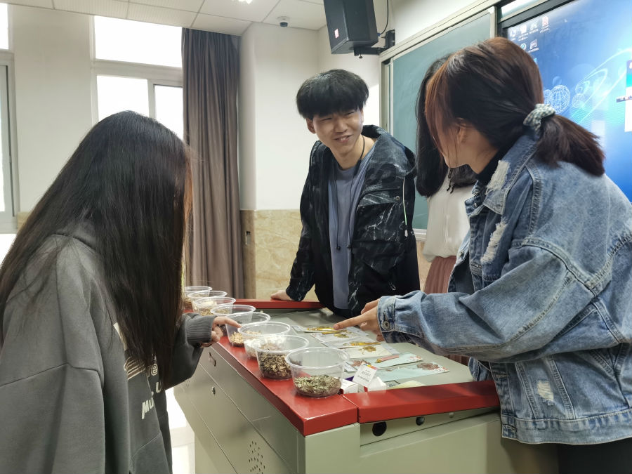 由主持人说明活动纪律后宣布活动开始,接着主持人依次分享中药材的视频。视频播放完毕后,由参与活动的同学分享视频中的知识、介绍药材的知识与用途。这个方式吸引了同学们积极参与活动、激发了同学们对中药的学习兴趣。最后进行认药材环节,参与同学积极举手,上讲台说明是哪一种药材。一些对于中药材知识较为了解的学生脱颖而出,获得了本次活动的小礼品。