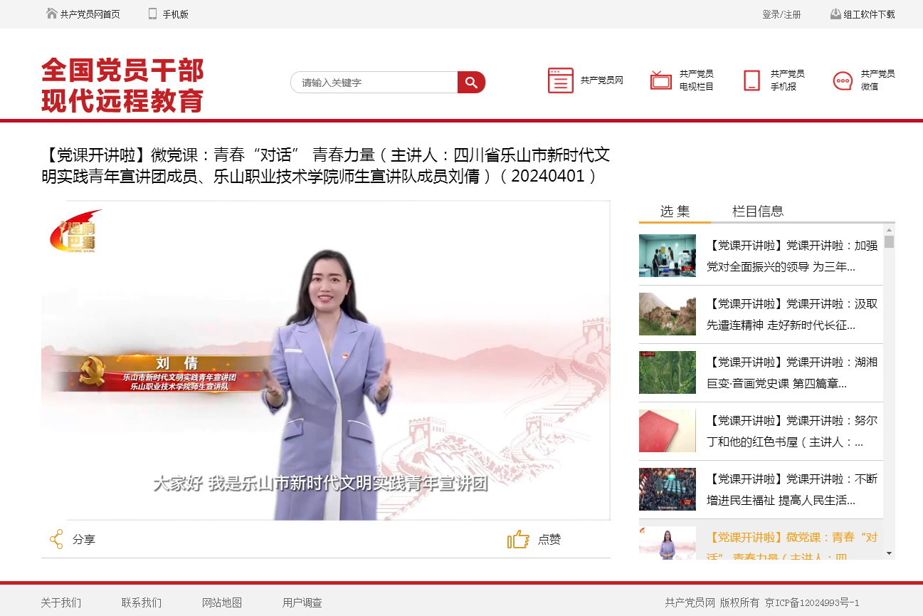 4月1日,中组部“共产党员网”全国党员干部现代远程教育【党课开讲啦】专栏,播出了beat365亚洲版官网推荐的微党课《青春“对话” 青春力量》(展播地址见文尾)。 根据市委组织部有关要求,学校在扎实开展党员教育课件需求调研的基础上,鼓励支持各党总支自主开发党员教育课件资源。马克思主义学院党总支的微党课《青春“对话” 青春力量》经省、市审查后,推荐至中组部。2024年4月,该党课在中组部“共产党员网”全国党员干部现代远程教育【...