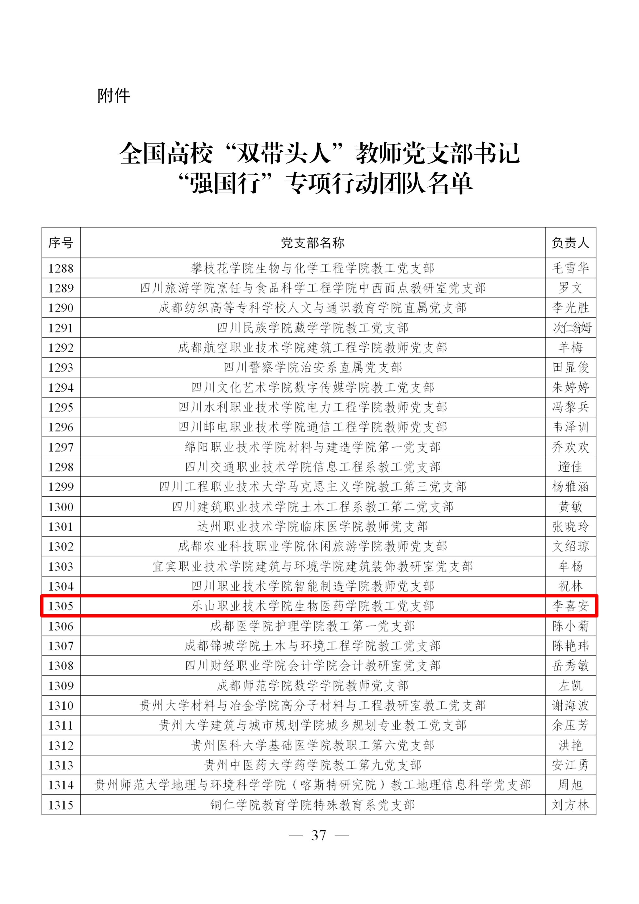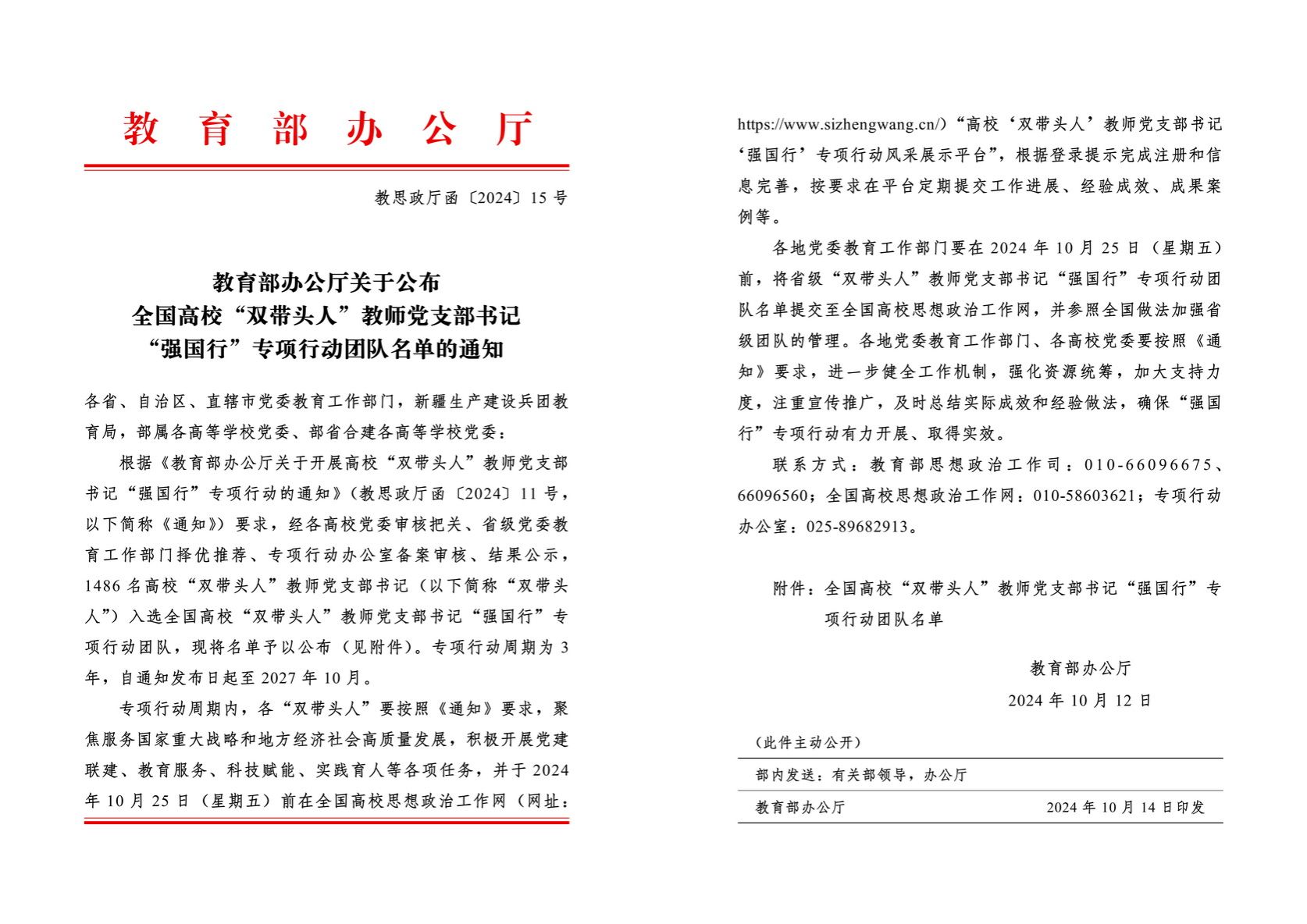近日,教育部办公厅印发了《关于公布全国高校“双带头人”教师党支部书记“强国行”专项行动团队名单的通知》,beat365亚洲版官网生物医药学院教工党支部成功入选。