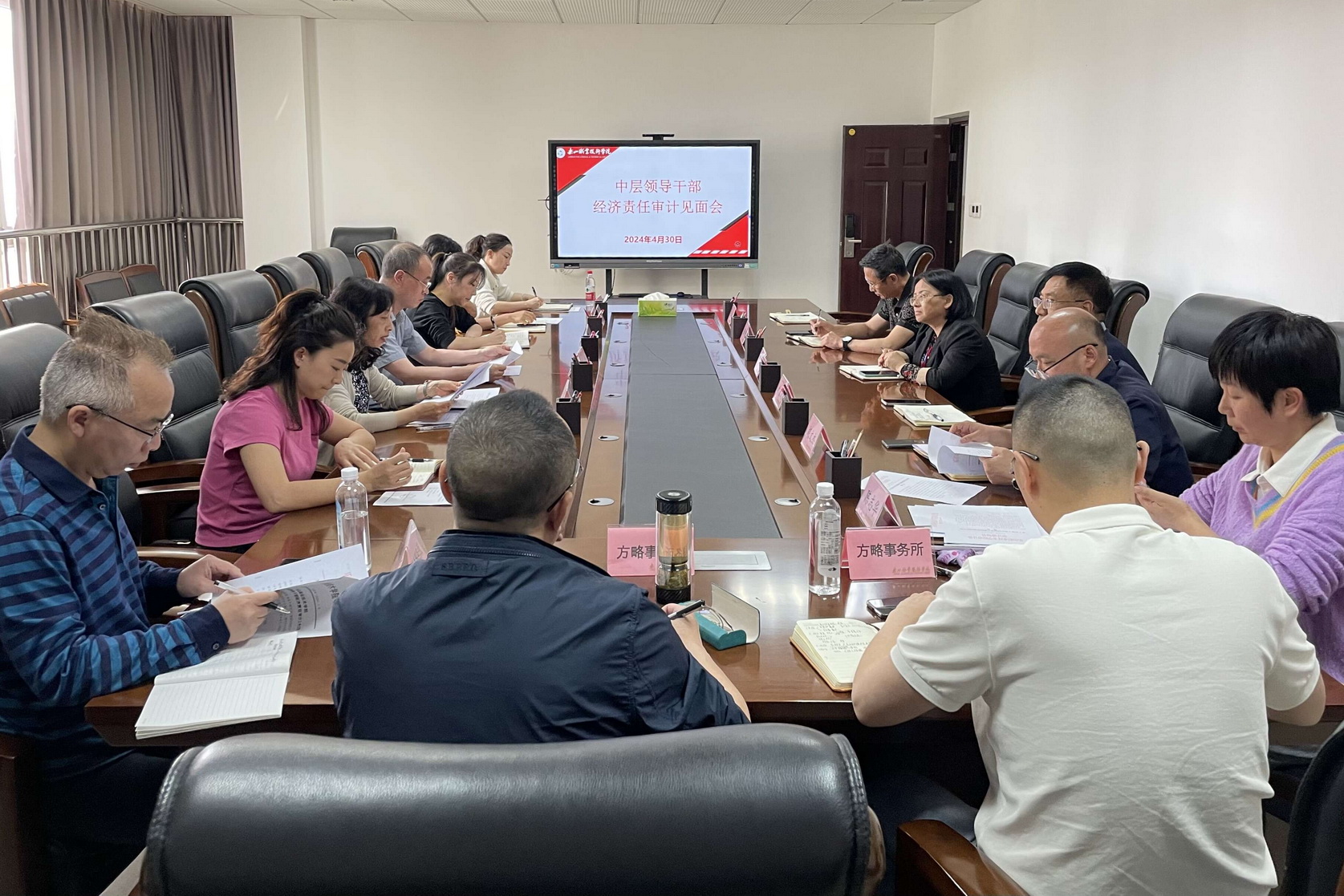 4月30日下午,学校2024年中层领导干部经济责任审计进点见面会在行政楼324会议室召开。校长刘忠出席会议并讲话。经责审计联席会议成员单位负责人,4名被审计对象、四川方略会计师事务所有限责任公司和审计处工作人员参加了会议。会议由审计处处长郭蓬主持。