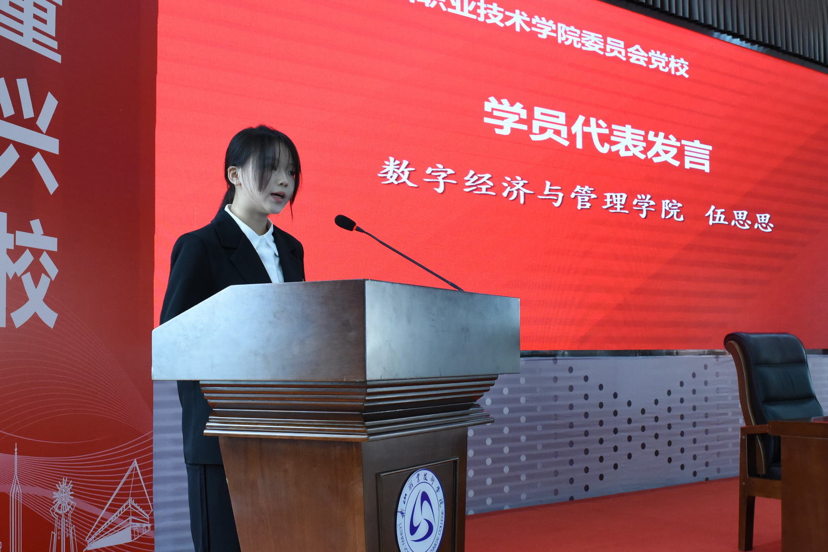 数字经济与管理学院学生伍思思代表全体学员发言,表示要提高认识,端正态度、遵守纪律,以饱满的热情、认真的态度学习。
